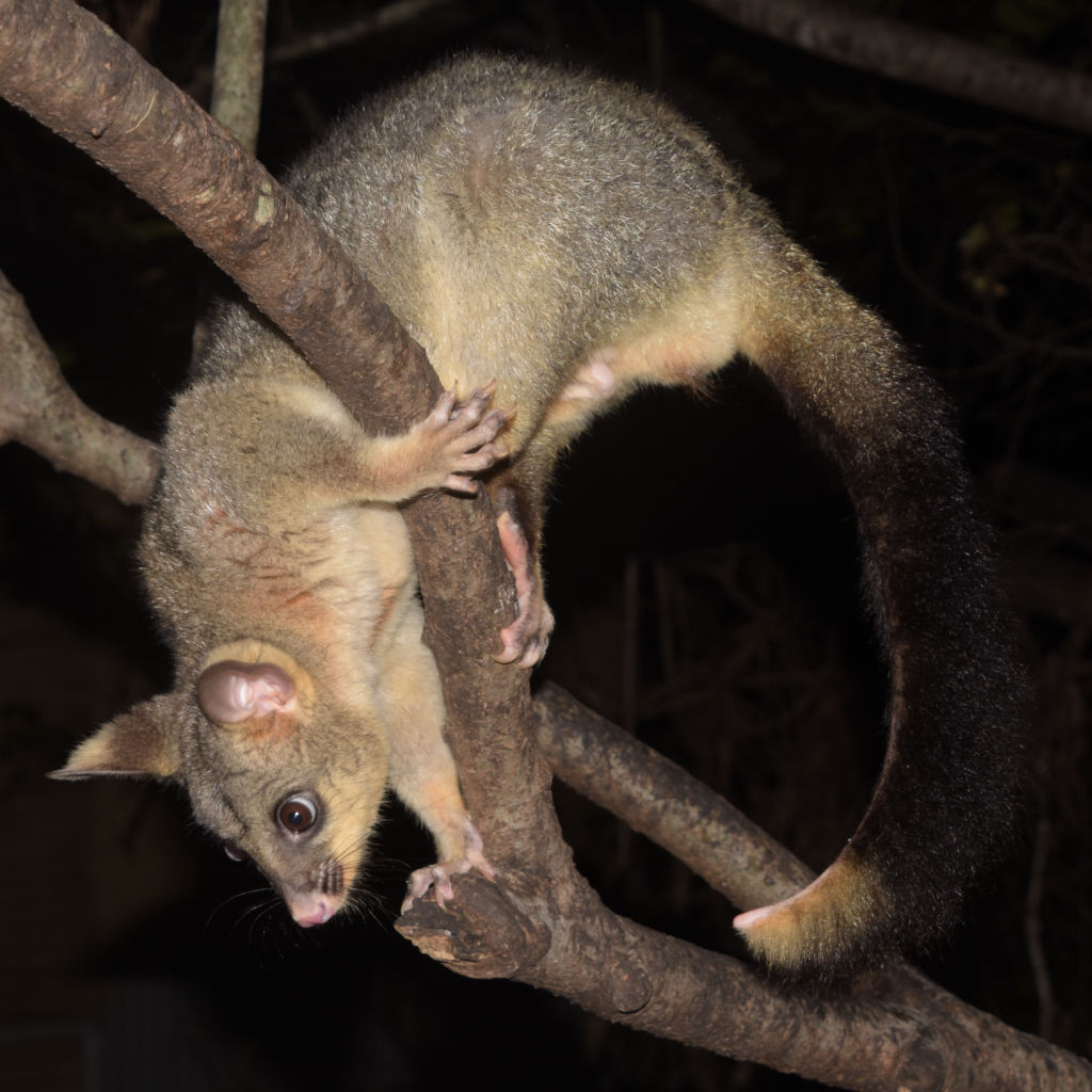 WaltGender: Male Distinguishing marks: Has a golden tip on his tail. Very nervous manner. First Seen: April 2021 Last Seen: May 2022 Walt suddenly appeared late in April 2021 and somehow seemed to peacefully coexist with the dominant male Marcel. He has a very nervous and jumpy manner and had at least twice fallen off the balcony handrail as a result. Walt is the first possum in a number of years to have a white-tipped (or actually more like golden-tipped) tail. |