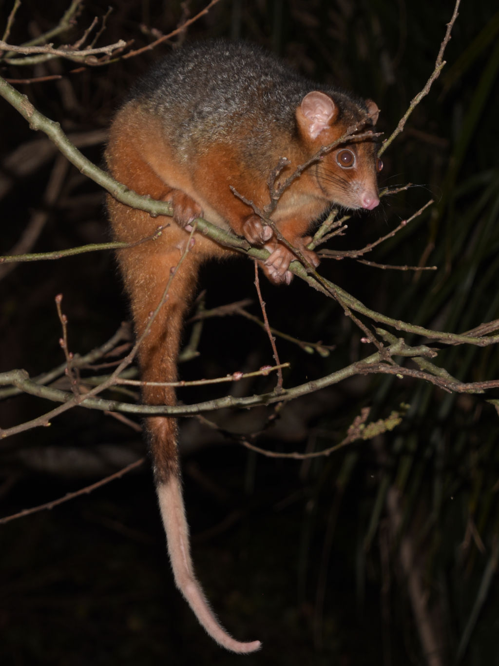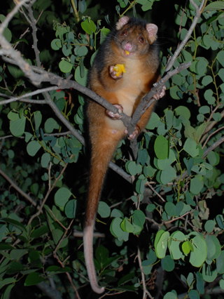 FarleyGender: Male Distinguishing marks: Very rufous colouring. Tail tapered at the end. Lean body. First Seen: January 2015 Last Seen: April 2017 Mother: unknown Farley was the dominant male for a couple of years. In Feb 2015, he started using the possum boxes and since then had slept in boxes pretty much every night. In March 2015 he suddenly decided to take food from hand and immediately become confident around humans. Farley was a pushy possum. Rather than wait for food, he would crane forward and snatch with his hands. He often came into house to toe-bite. He seemed to suffer from pluckings and wounds considerably more often than other possums. |