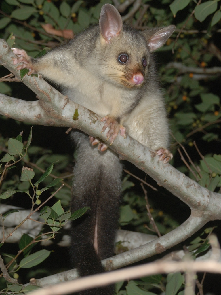 PinotGender: Male Distinguishing marks: Looks similar to Marlon but younger and with a tail more like Kiki's. First Seen: March 2012 Last Seen: June 2013 Mother: unknown A visiting male similar to Marlon, but seemed to be younger and lower down on the packing order. Initially nervous (but not as nervous as Marlon); it was several weeks before he would take food from hand, but eventuqally became very bold towards humans and cheeky to other possums. He was also a bit of an exhibitionist; he was seen mating with both Kiki and Flea. Pinot never needed to be treated with antibiotics, despite having suffering injuries that would have normally required such treatment. |