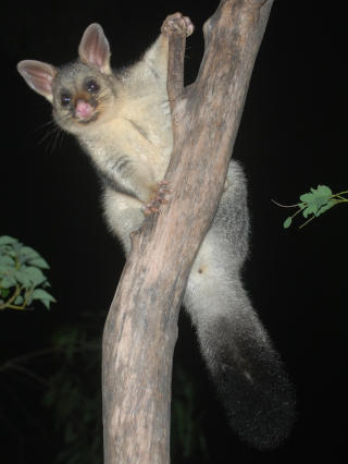 BasilGender: Male Distinguishing marks: The outer edges of the inside of his ears were a peculiar silver-grey colour (not obvious in the photo) which gave the impression they were glowing. White tip on tail. First Seen: November 2007 Last Seen: January 2008 Mother: unknown Children: May be Kiki's father While most possums would take food from hand in a gentle manner, Basil would often swipe with his claws. |