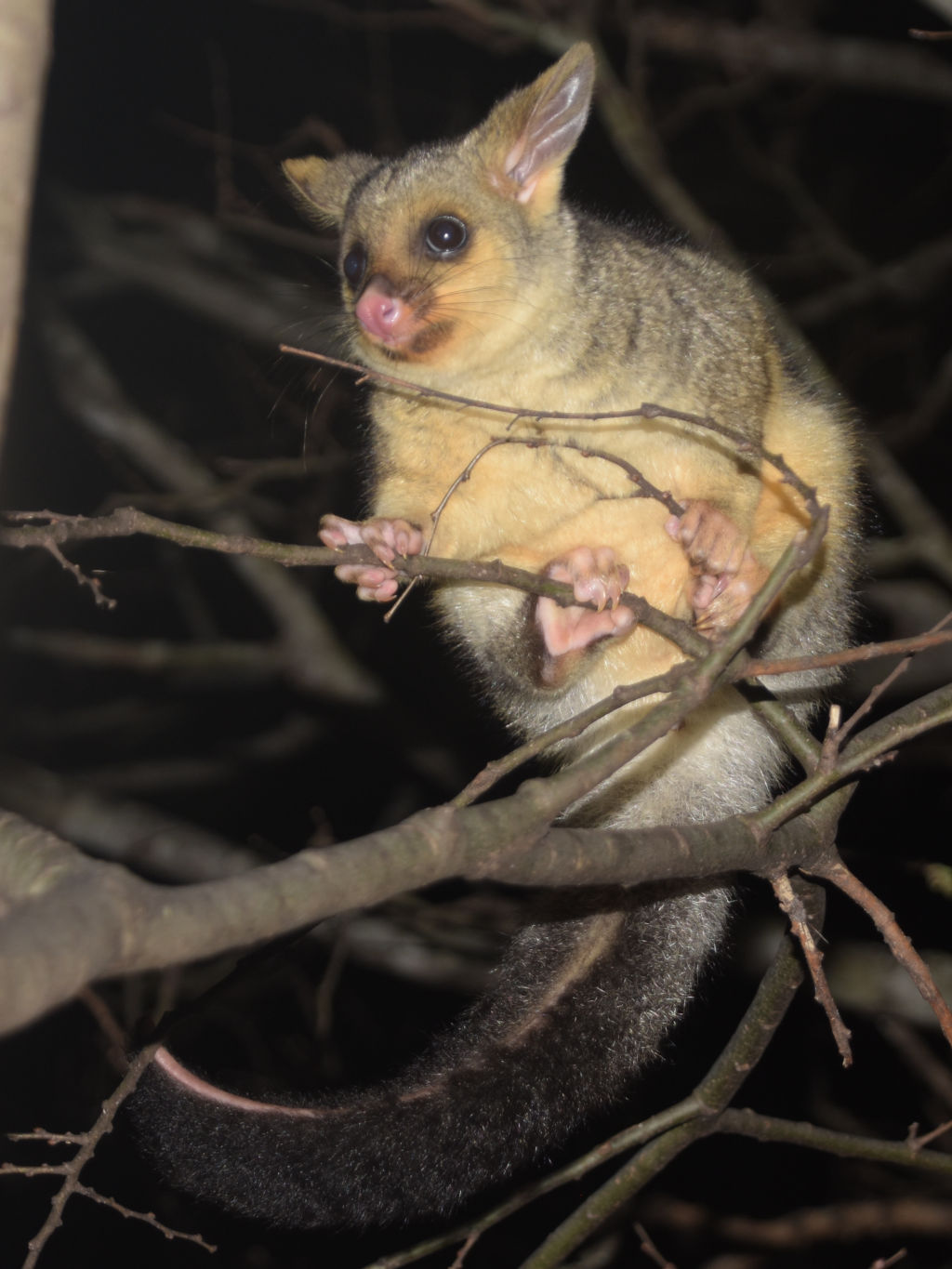 PinotGender: Male Distinguishing marks: Looks similar to Marlon but younger and with a tail more like Kiki's. First Seen: March 2012 Last Seen: June 2013 Mother: unknown A visiting male similar to Marlon, but seemed to be younger and lower down on the packing order. Initially nervous (but not as nervous as Marlon); it was several weeks before he would take food from hand, but eventuqally became very bold towards humans and cheeky to other possums. He was also a bit of an exhibitionist; he was seen mating with both Kiki and Flea. Pinot never needed to be treated with antibiotics, despite having suffering injuries that would have normally required such treatment. |